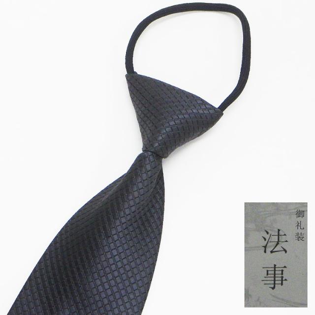 メンズ ネクタイ 礼装 ワンタッチネクタイ 法事用 フォーマル 濃グレー/マイクロチェック 法要 ユニフォーム メール便可 HJ01