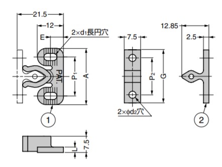 (サイズ)A:P1:E:G:P2:L:d1:d2