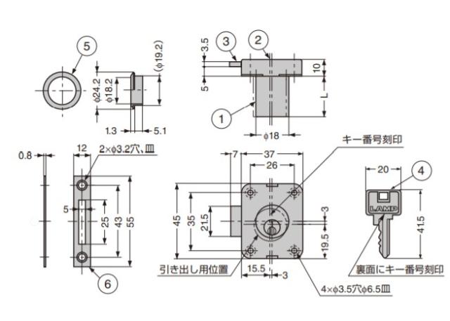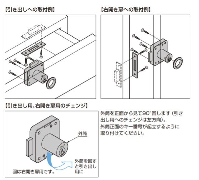 面付 シリンダー 錠 3310型 用 トータルロック3310シリーズ 扉厚、シリンダー長さ調整用スペーサー 別売品 【説明】用途:取付面:鍵違い数:マスターキー:解錠時:対応タートルロック 引き出し片開き扉(右用):木:156通り:-:キーは抜ける:3310シリーズ 外筒チェンジ式(下記)による引き出し用・右開き扉用の兼用型です。 面付タイプなので、かぶせ扉などに適しています。 製品内容は、部品としての品質範囲です。この部品を使用した最終製品の機能・性能・安全を保証するものではありません。 受注対応で素地研磨仕上もできます。 【注 意】 外筒チェンジの際は必要以上に回さないでください。破損の原因となります。 錠前の取り扱い上のご注意をご確認ください。 【付属品】 十字穴付皿木ねじ3.1×20、2.1×10(ステンレス鋼) キー リング 受座 【引き出し用、右開き扉用のチェンジ】 外筒を正面から見て90度回します(引き出し用へのチェンジは左方向)。 外筒正面のキー番号が起立するように取り付けてください。 複数のキャビネットを同じキーで施解錠できます タートルロック3310シリーズの中で同じキー番号をご指定いただくと、図のように同じキーで複数のキャビネットを施解錠できます。 【色】ブラック 【サイズ】厚さ:4 【注文コード】150-060-149 【品番】TSSP-B 製品内容は、部品としての品質範囲です。この部品を使用した最終製品の機能・性能・安全を保証するものではありません。 ※画像はイメージです。 ※パッケージ、仕様、品番などの変更が予告なく変更される場合が御座います。 カテゴリー |