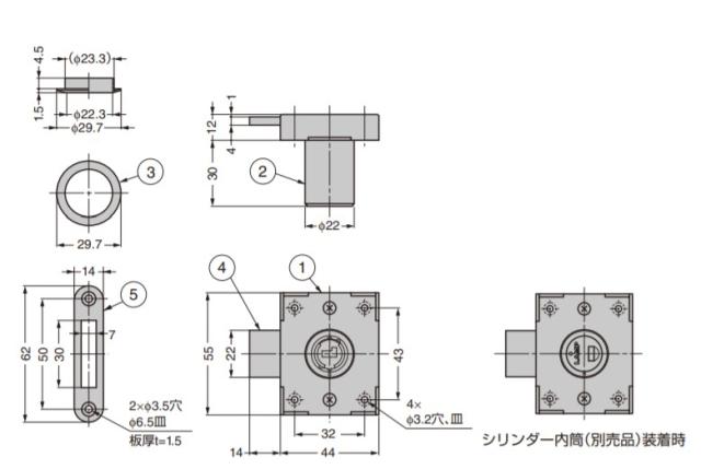 シリンダー脱着式 面付 シリンダー 錠 6830-30MK型 用 LAMP脱着錠シリーズ 別売品
