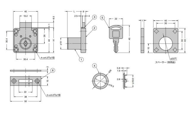 面付 シリンダー 錠 507型 用 本体 【説明】用途:取付面:鍵違い数:マスターキー:解錠時:対応タートルロック 引き出し片開き扉:木:20通り(507-11型):-:キーは抜ける:- 面付タイプなので、かぶせ扉などに適しています。 キーはプラスチックカバー付です。 以下の製品と同じキー番号をご指定いただくとキーの共通使用ができます。(面付シリンダー錠508型、513型、ガラスプッシュ錠419型) 【注 意】 錠前の取り扱い上のご注意をご確認ください。 【付属品】 キー、リング、受座 【推奨ねじ】 十字穴付皿タッピンねじ呼び6 スペーサーDS型(別売品) 【材料】(1)シリンダー:亜鉛合金(ZDC) (2)本体:亜鉛合金(ZDC) (3)デッドボルト:亜鉛合金(ZDC) (4)リング:黄鋼 (5)キー:黄鋼 (6)平受座:鋼 【仕上】(1)シリンダー:ニッケルめっき (2)本体:ニッケルめっき (3)デッドボルト:ニッケルめっき (4)リング:ニッケルめっき (5)キー:ニッケルめっき (6)平受座:ニッケルめっき 【サイズ】適応板厚L:26 【注文コード】150-001-098 【品番】507-26-D 別番/同番:同番 シリンダー径:19 キー抜き差し:2ヶ所 キー回転角度:180度 [輸入]このマークの製品は輸入品のため「寸法・色調・作動感のばらつき」や、予告なく仕様変更等を行う場合があります。 製品内容は、部品としての品質範囲です。この部品を使用した最終製品の機能・性能・安全を保証するものではありません。 ※画像はイメージです。 ※パッケージ、仕様、品番などの変更が予告なく変更される場合が御座います。 カテゴリー |