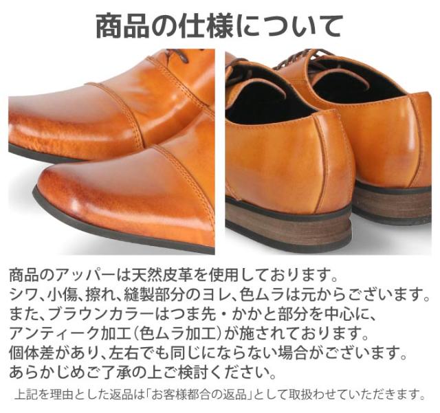 商品のアッパーは天然皮革を使用しております。シワ、小傷、擦れ、縫製部分のヨレ、色ムラは元からございます。また、ブラウンカラーはつま先・かかと部分を中心にアンティーク加工(色ムラ加工)が施されております。個体差があり、左右でも同じにならない場合がございます。あらかじめご了承の上ご検討ください。