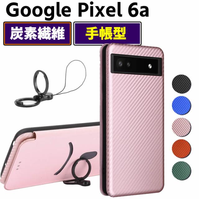 Google Pixel6 A 手帳型 薄型 カーボンファイバー 炭素繊維カバー TPU 保護バンパー 財布型 マグネット式 カード収納 落下防止 ホルダ 横開き Google Pixel 6a