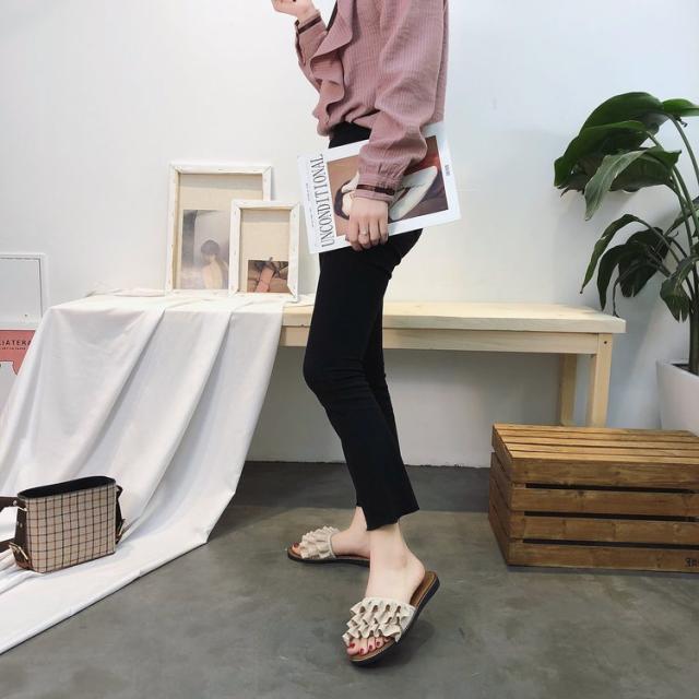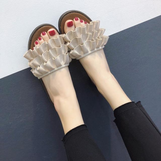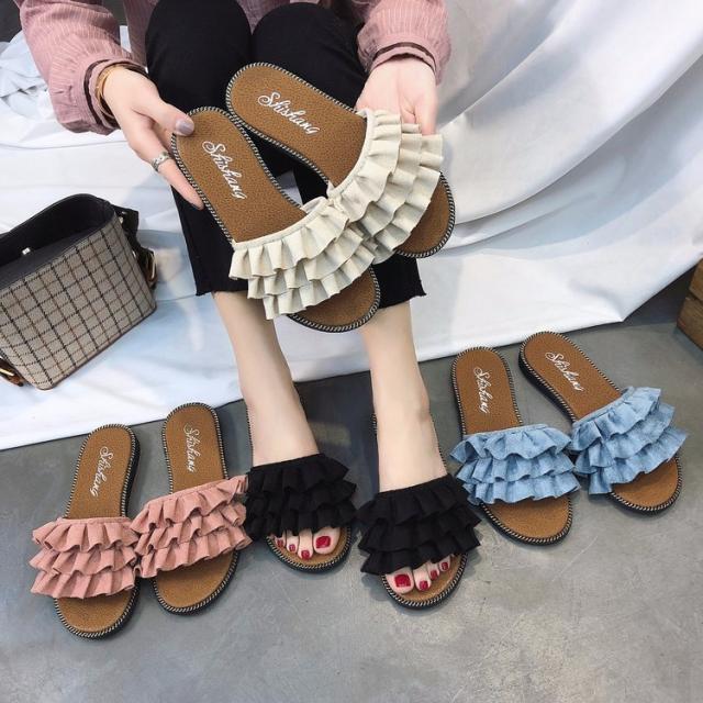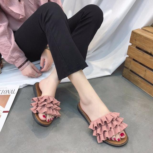 フリルサンダル フリル かわいい サンダル ペタンコ ビーチ コンフォート スリッパ