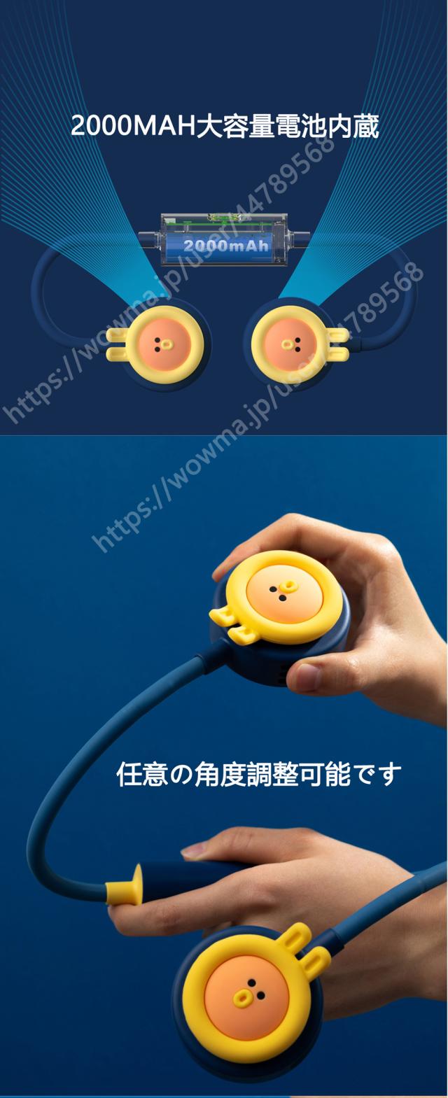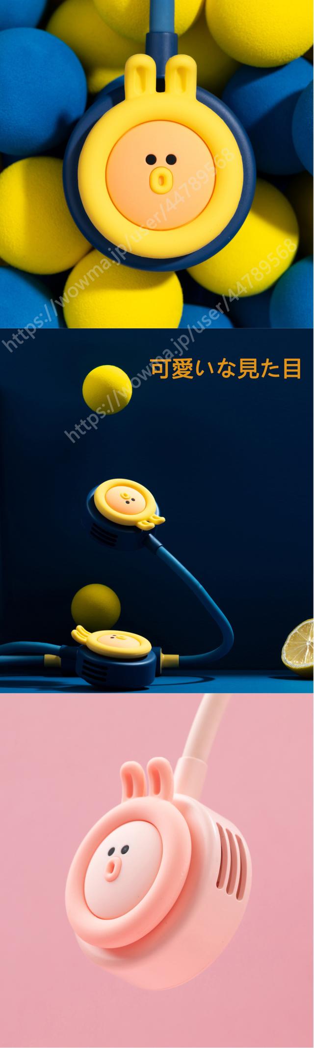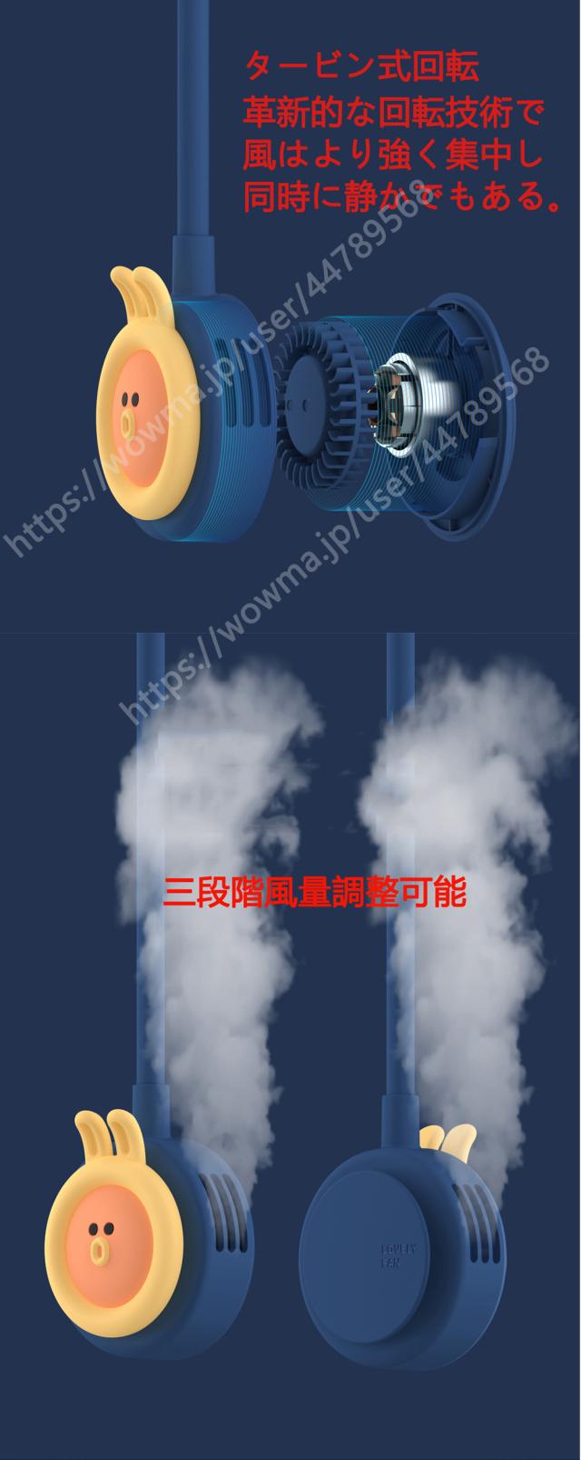 「2021年夏最新版」かわいいアニメの絵柄 首掛け扇風機 携帯扇風機 羽根なし 3段階風量調節 USB充電 軽量 携帯便利 2000mAh 360度調整可 日本語説明書付き 省エネ オフィス/アウトドア/通勤/通学/ランニング/祭りなどに適用