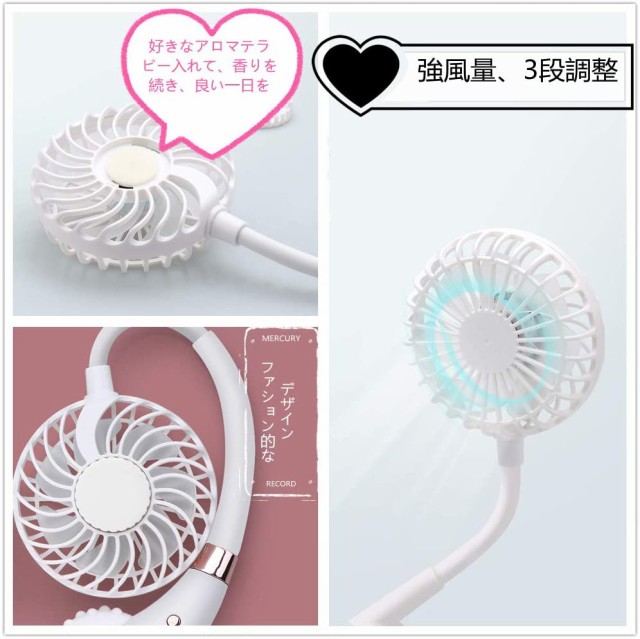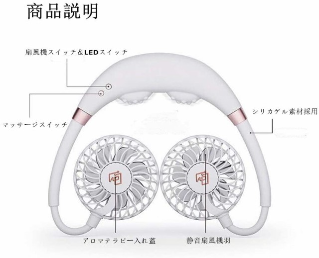 【2020 携帯扇風機 首掛け扇風機 扇風機 3段階風量調節 マッサージ付き 360°角度調整 持ち運び便利 静音 省エネ 長時間連続使用