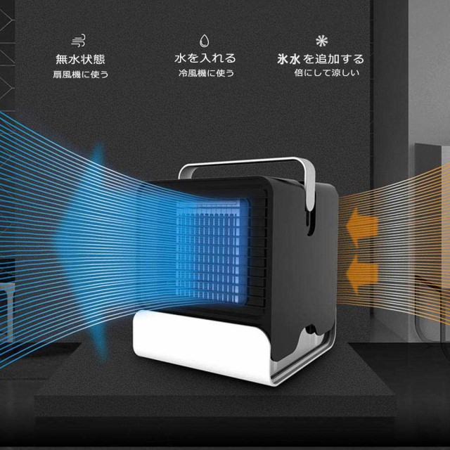 [2020年版強化版クーラー]冷風機 扇風機 卓上冷風扇 USB給電式 冷却 加湿 空気清浄 LED搭載 夜間ライト 熱中症対策 涼しい自然風 小型冷