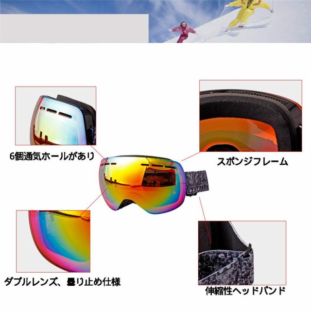スキーゴーグル ダブルレンズ スノボートゴーグル UV400 紫外線カット 曇り止め 防風防塵 冬山登山/サバゲー/バイク/スキー運動に全面適