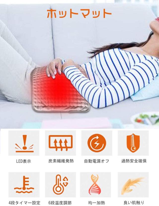 ホットマット 電気マット カーペット 電気 ホット 一人用 ミニ 温度調節 タイマー機能付き リモコン付き 過熱防止 省エネ 洗える 電気パッド 暖房 生理痛・肩こり・寒さ対策 固定帯付き お?たんぽ付き プレゼント 取扱説明付き