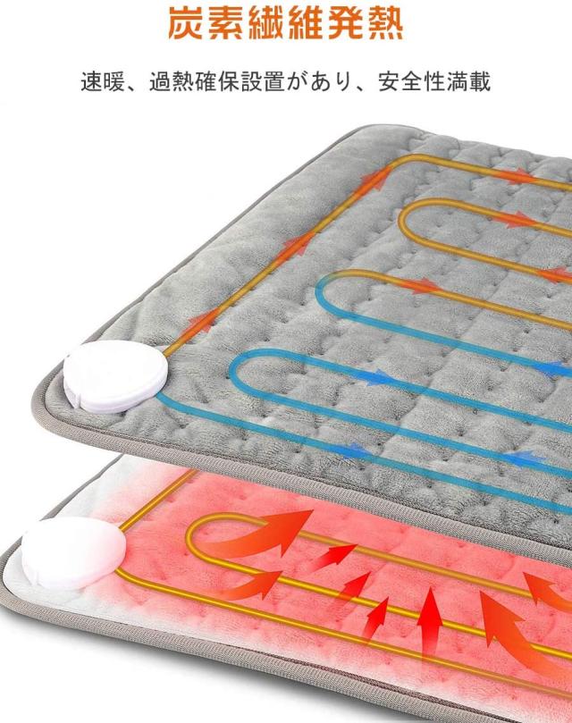 【温度設定機能&タイマー機能付き】6段階の温度設定(40°C〜60°C)があり、4段階のタイミング設定(30分間〜120分間)でき、LED画面表示で見やすいです。生地が柔らかくて快適です。抗菌性と防臭性があります。毛も色も落ちにくく、触り心地がよく、肌に刺激を与えません