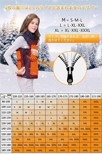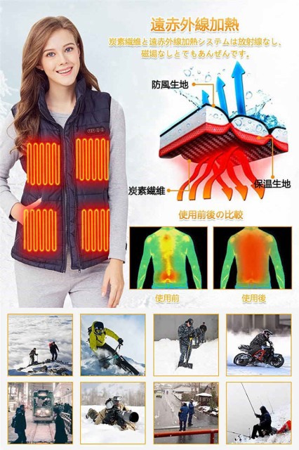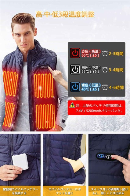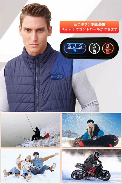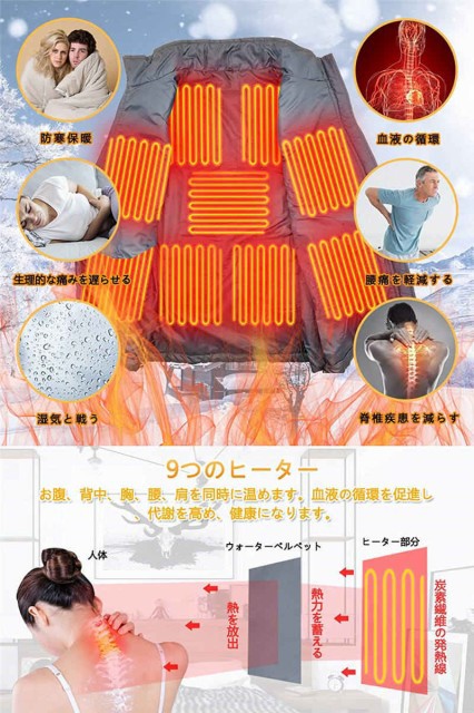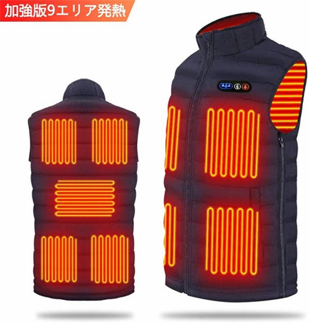 加強版9エリア発熱 加熱ベスト 9-5つヒーター サイズが調節可能 電熱ベスト 3段階の温度制御 電熱ジャケット 保温 防寒 秋冬用 大雪対策