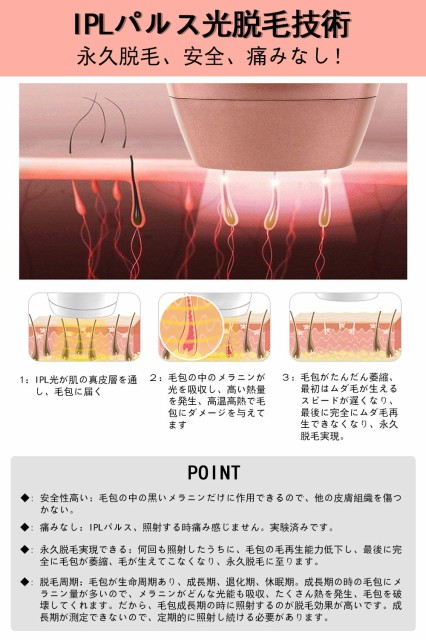 全身脱毛し放題:わき、腕、足、口角周り、ビキニライン、背中、胸、髭、フェイスライン(目より以下)など、ボディー全身の各部位のむだ毛を脱毛可能。総照射数じゃなんと40万回!ご家族ゃ友人とも兼用できる!これ一台あれば、プロ仕様のレーザー脱毛は自宅でできる、むだ毛のお手入れは人目を気にせず、いつでも好きな場所でご自分のペースで自由自在にだつもうできる。高いサロンにも行かなくて金銭的に節約できます、サロン一回分のお金で自宅で全身脱毛できる、コスパ最高!