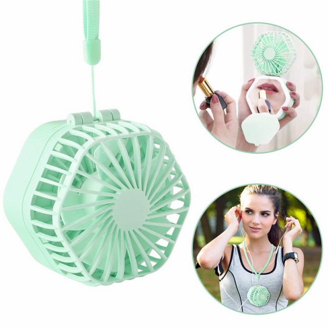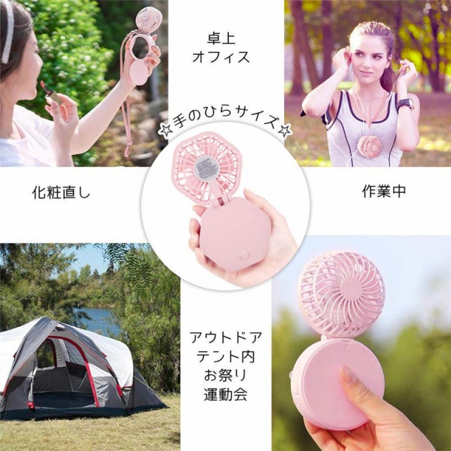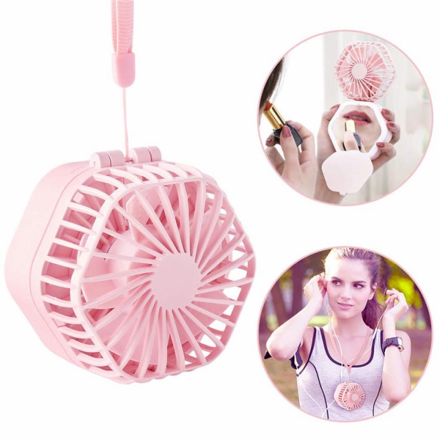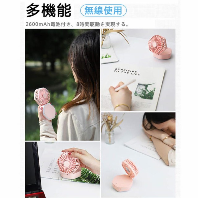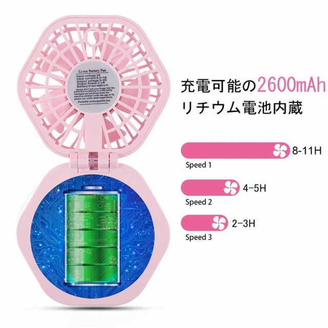 携帯扇風機 静音 USB充電式 ミニフアン 認証取得済 卓上 首かけ 扇風機 3WAY 2600mAh ミラー付き 照明付き 超強力 折り畳み式