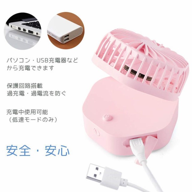 【3段階風量調節、弱→中→強→】★usb扇風機本体のボタン押す度に、弱→中→強→停止のモードへと切り替え、5枚羽根で風量をタップリと味わえる、家からお出かけまでいろいろなシーンに役たちます、熱中症対策にも!