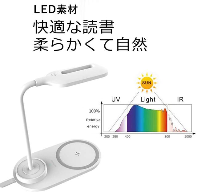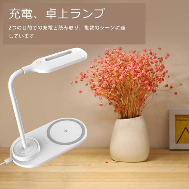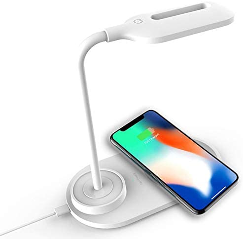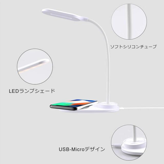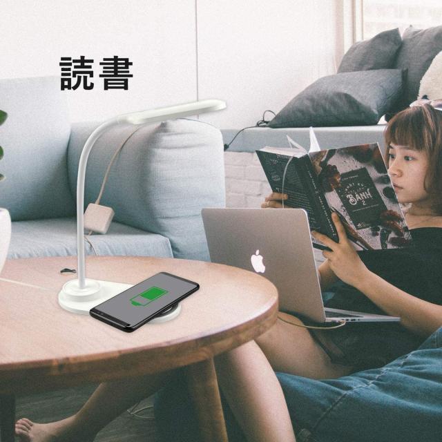 ワイヤレス充電器付きLEDデスクランプ、目を引くテーブルランプ、2つの明るさレベル調光テーブルライト、2色のライト、子供用