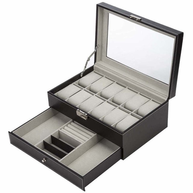 腕時計収納ケース 腕時計収納ボックス 2段式 12本用 アクセサリー収納兼用
