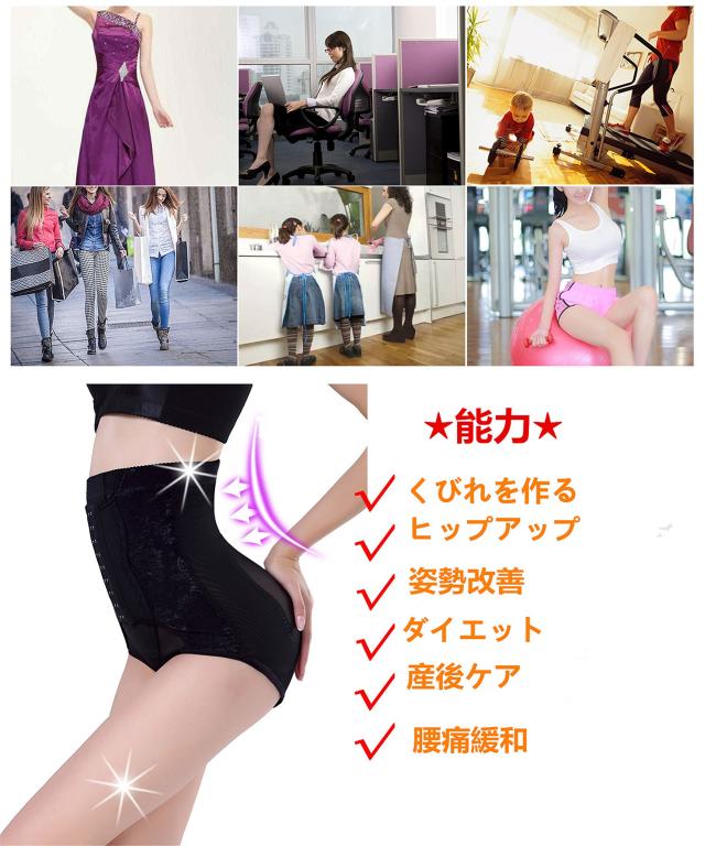 骨盤矯正:骨盤ガードルを履くと、腰を高い位置にキープしてくれます。骨盤もしっかり引き締めます。
