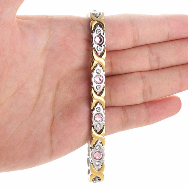 内側にはゲルマニウム、トルマリン、マイナスイオン、遠赤外線のストーン等が埋め込まれており、健康とファッションを両立できる磁気ブレスレットです。