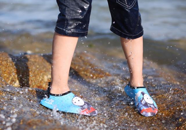 磯遊びと潮干狩りの必需品:マリンシューズは足の切り傷を防ぐ、磯遊びの必需品。磯場や岩場の石、ビーチに落ちているガラスの破片や貝殻などから子供の 足を守る。