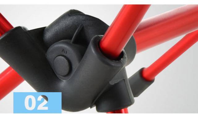 優れたデザイン----シートにフック紐がついており、これを引っ張りながら組み立てると、スムーズにフレームをシートに差し込むことができます。