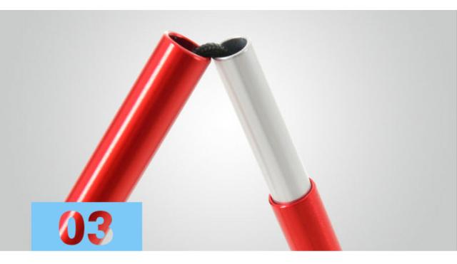 次に、座面生地をつけていきます。まず、下部から付けていきます。ポケットにポールをしっかりと差しこみます。左右どちらとも付けたら、上部もつけます。(この時、少し力が要りますので、ポケットの部分についている輪っか紐をご活用ください)
