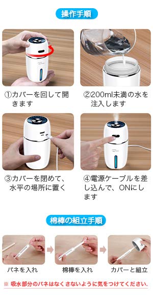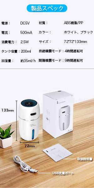 加湿器 卓上 超音波式 ミニ加湿器 超静音 車用加湿器 ペットボトル型 小型 空焚き防止 部屋 車載 オフィス 乾燥/花粉症対策