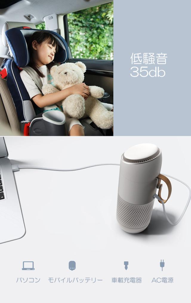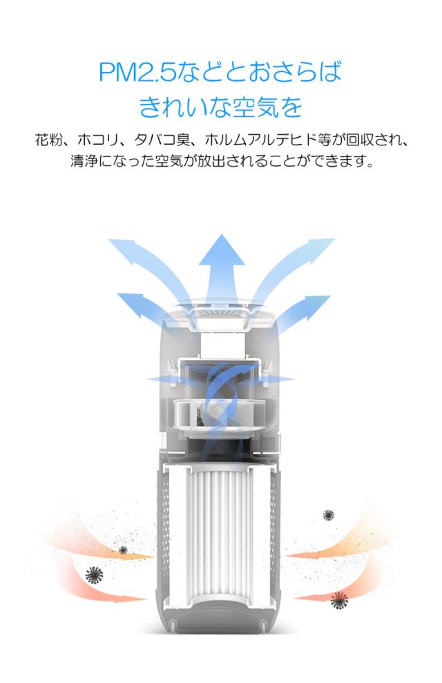 空気清浄機 USB 卓上 車載 携帯用 小型 コンパクト 花粉 アロマ マイナスイオン発生 ポータブル空気清浄機 活性炭 PM2.5