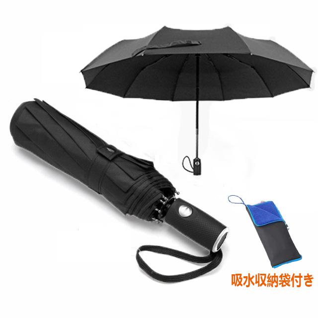 折りたたみ傘 防風傘 ワンタッチ自動開閉 テフロン加工 10本骨 晴雨兼用 ギフトボックス 収納 滑り止め、快適なハンドル ブラック