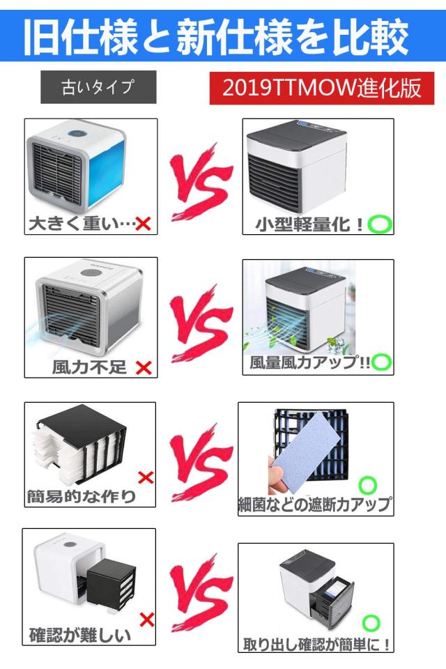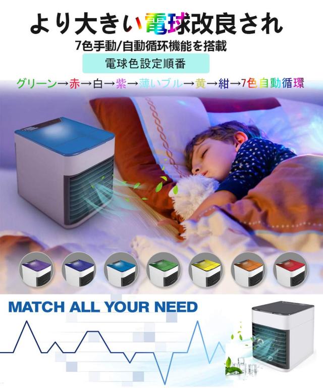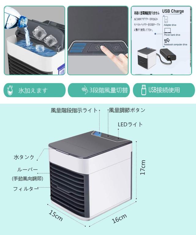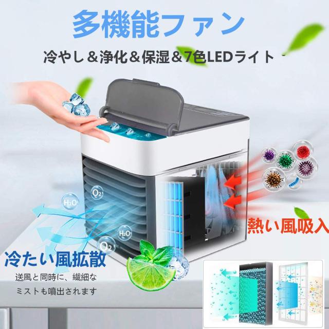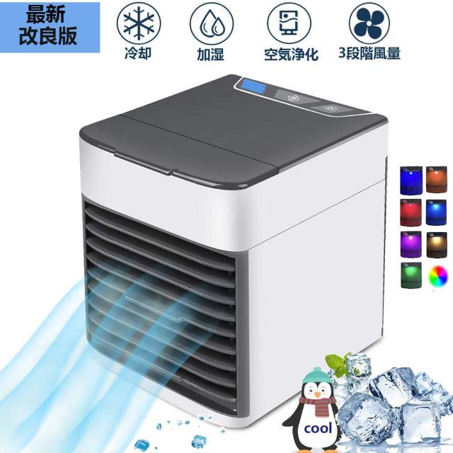 2019アップグレード済みミニポータブルエアコン 卓上 USB 冷風機 冷風扇 ミニエアコンファン 冷却・加湿・空気清浄機 防カビフィルター搭載 風量3段階 小型 軽量 LEDライト 携帯性 USB充電式
