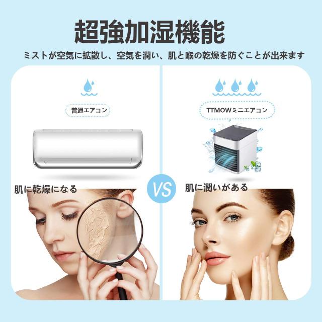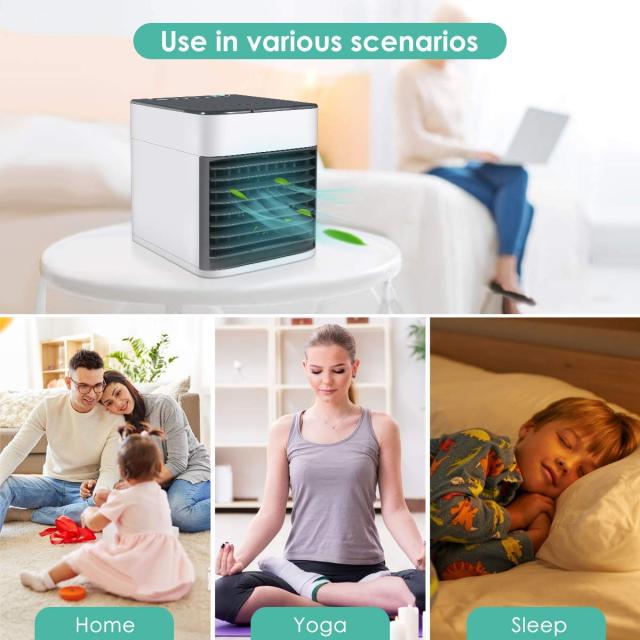 【3in1の製品、超実用】このミニエアコンファンは加湿や冷却、空気清浄を三大機能を1つの冷風機に搭載し、加湿器、空気清浄機を買うお金や部屋の空間を節約することができます。そして、卓上冷風機のサイズはわずか14.9*16.4*17CM