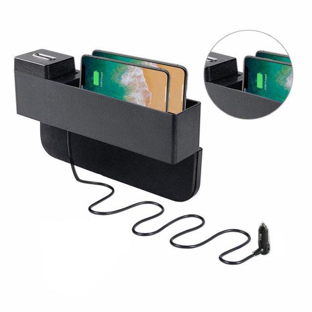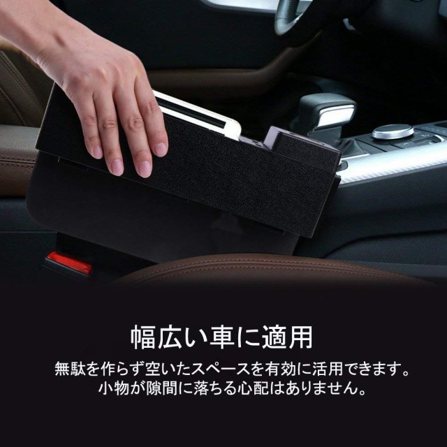 【商品仕様】材質:高品質なABS材質。サイズ:26cm*6.3cm*5cm。用途:運転中の急ブレーキでも座席の隙間落下防止・電話、財布等の小物収納・スマホ充電等。