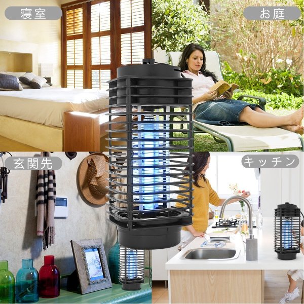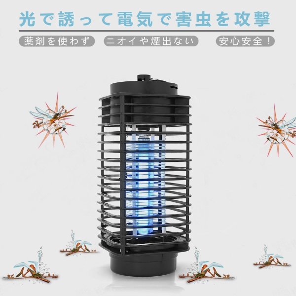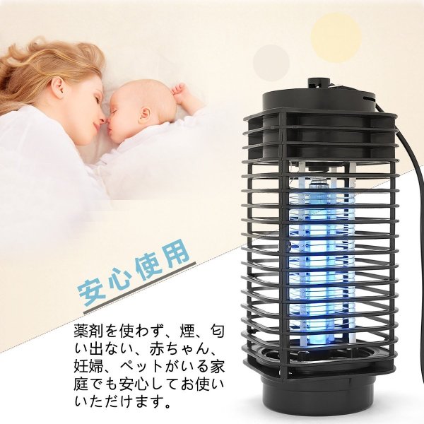 薬剤不要&安全】薬剤を使わず、蚊、蛾、ノミバエ等害虫の好む青い光で虫を誘い、金属ネットに触れ、高電圧で虫を撃退する室内向け殺虫器です、皮膚が弱い、鼻炎症状がいる人とお子様がいる家族に最適。なお、外装ボディは絶縁素材を採用して、人間とペットが触れても安全です、そして、耐久性が優れています、24時間に持続使用できます。