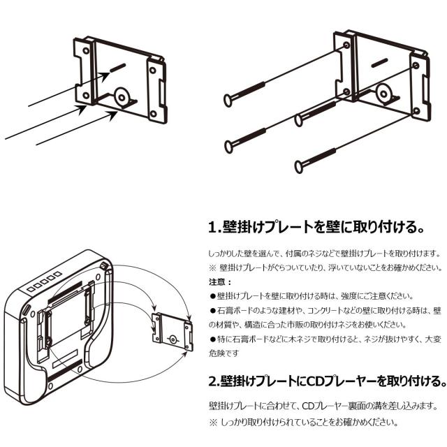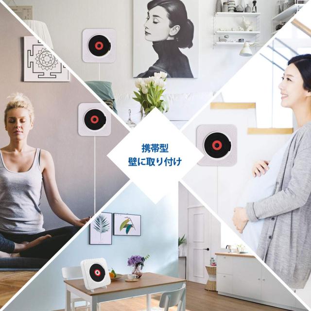 CDプレーヤー 置き&壁掛け式 1台多役 Bluetooth USB対応 ステレオ音楽システム リモコン付き 小型 軽量 音楽再生/語学学習/胎児教育