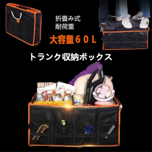 車用収納ボックス おもちゃ収納 60L 折り畳み式 トランク収納ボックス 大容量 取っ手付 使用便利 多機能 家庭/キャンプ/アウトドア