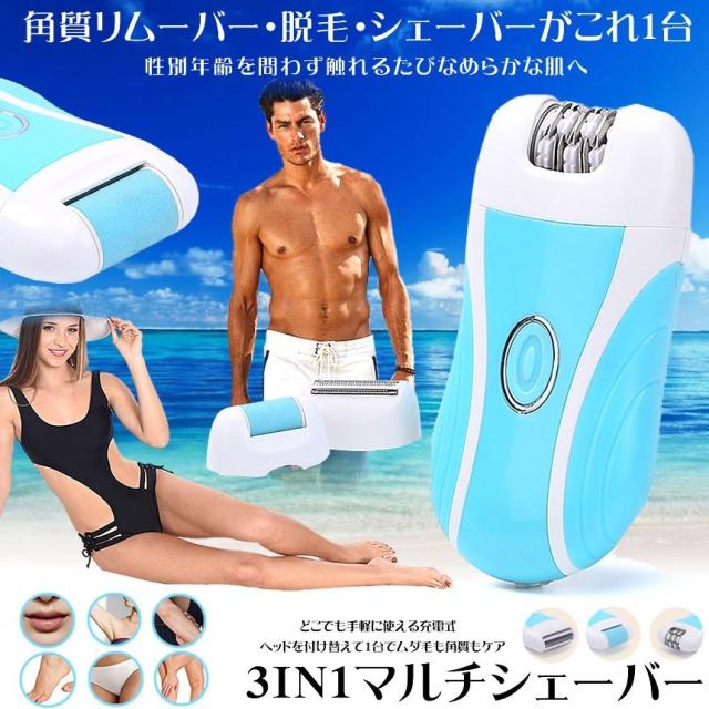 電気シェーバー 3IN1 メンズ レディース 女性 男性 脱毛 角質リムーバー ムダ毛 処理 産毛 ヒゲ 髭 角質ケア 持ち運び 全身 電動