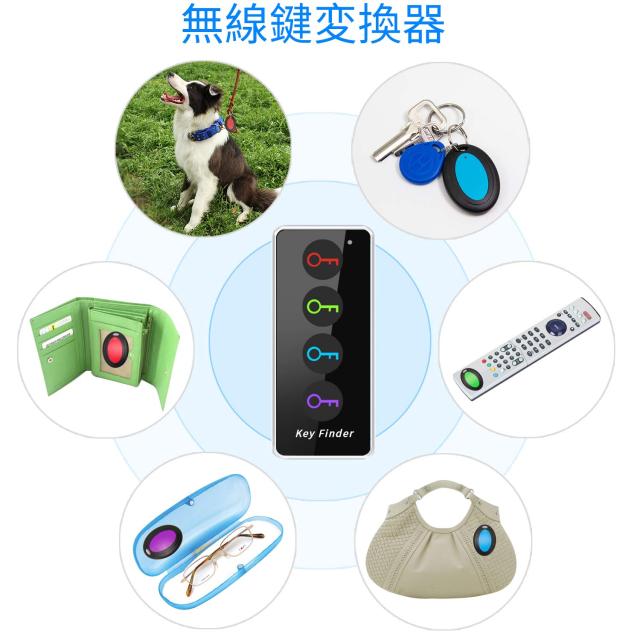 1リモコン4レシーバー鍵、テレビのコントロール、猫、財布、電話など、追跡したいものにレシーバーを取り付けます。