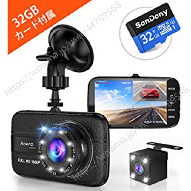 【最新 32Gカード付き】ドライブレコーダー 前後カメラ 1080PフルHD 1800万画素 デュアルドライブレコーダー ドラレコ