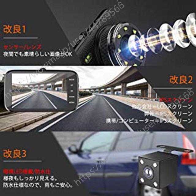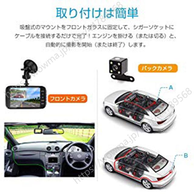 フルHD1920*1080P/30fpsのフロントカメラ+ VGA 640X480リアカメラによって、前方の状態がもちろん確認できて、後方から追突された場合もしっかり記録できます。