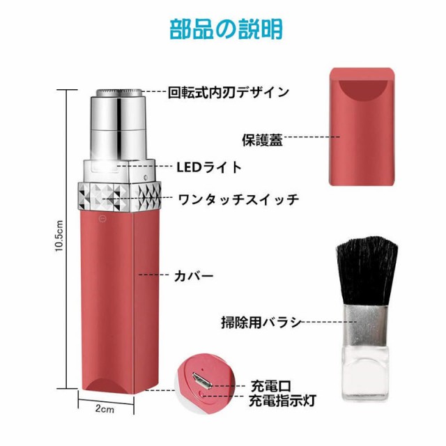 2019レディースシェーバー 電動【USB充電式】フェイスシェーバー 脱毛器 女性 ミニシェーバー 顔剃り 回転式 全身用 男女兼用 LEDライト