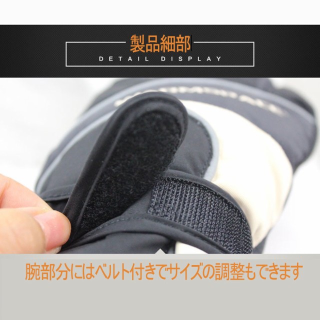 手首のサイズ調整可能:手首の部分にサイズ調節可能なベルトが付いて、しっかり装着できて風・雪の侵入を防いで、手首までカバーしてくれます。