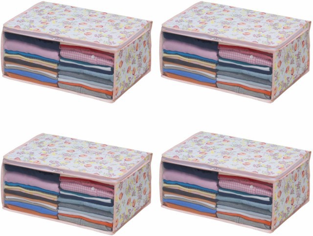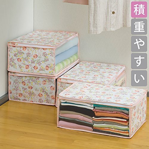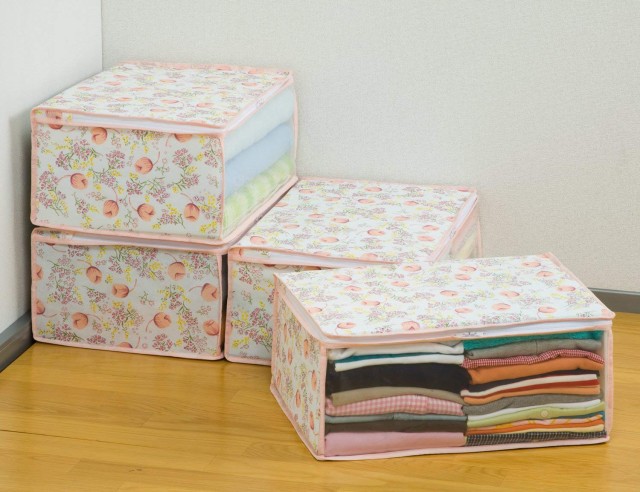 衣類収納ケース 不織布製 チューリップ柄 通気性に優れた生地 4個組