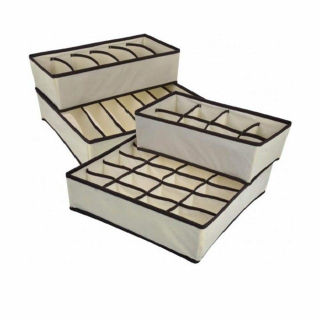 収納ボックス 引き出し仕切り 仕切りケース 収納ケース 下着 靴下 パンツ ブラジャー 収納 セット (ベージュ-4点セット-折り畳み可能)
