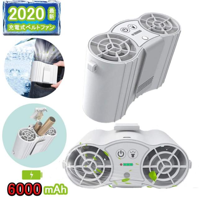 ベルトファン携帯扇風 機腰掛け扇風機 超強風 空調服ファン 屋外作業 熱中症対策作業USB充電式大容量6000mAhバッテリー内蔵
