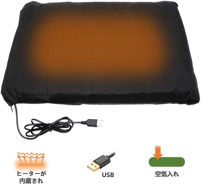 ヒータークッション USBヒーター シートヒーター ホットシート ホットクッション ホットマット 発熱マット 空気入れ 電熱 温座 ヒーター付き 電気マット 一人用 即暖 快適 アウトドア適用