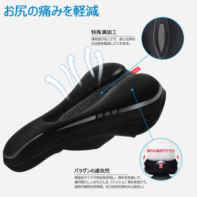 自転車 サドルカバー お尻が痛くない 低反発サドルクッション 革新的なテープクロス式 しっかり固定 通気性 超肉厚
