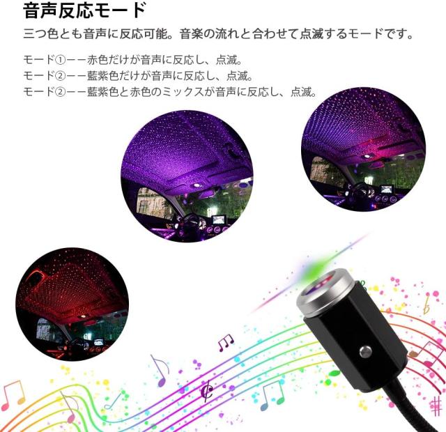 LED 車用 イルミネーション パープル レッド 混色 3色 車載 雰囲気 ライト ブルー LEDイルミネーション 音声反応 USB式ライト 取付簡単 高輝度 車内装飾用 パーティー クリスマス 誕生日 カラオケ 汎用 藍紫色 赤色 ミックス 3色切替