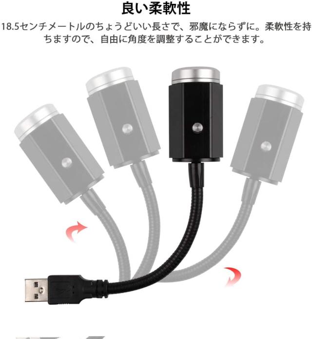【星空に憧れ!】USBに差し込む瞬間、車内が星空のような雰囲気がします。ライト前の金具を回すと万華鏡のように柄が変わり、お好きな光柄を選べます。それに柔軟性を持ちますから、どのようにねじ曲がっても良いです、イルミネーションだけで愛車を彩ることができます。