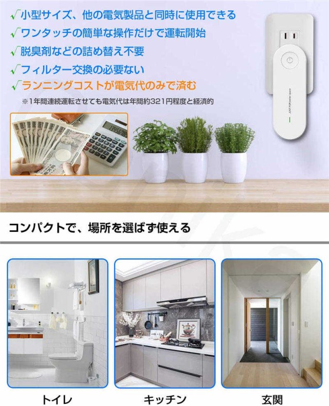 【2021最新型】 マイナスイオン 脱臭機 小型 コンセント式 2枚セット 操作簡単 空気清浄機 人体無害 ペット 部屋 トイレ タバコ 強力 消
