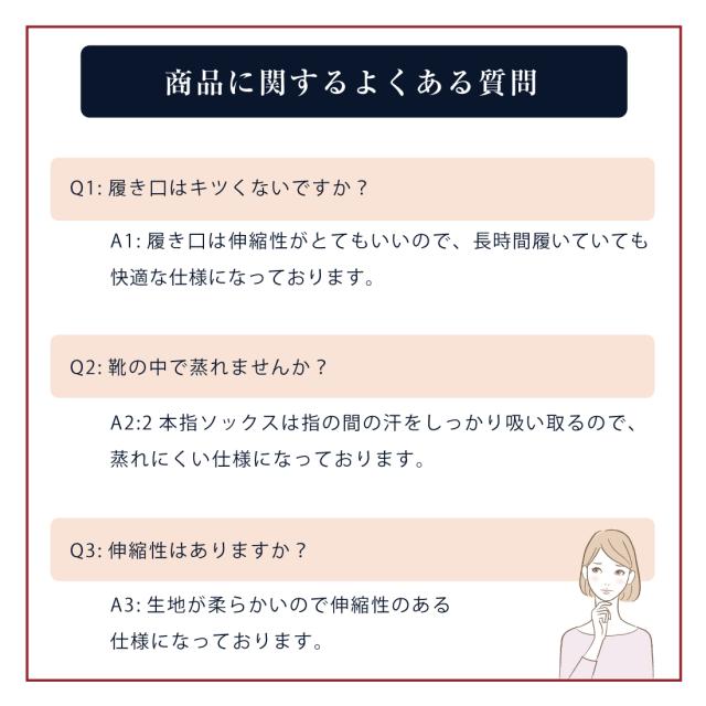 - 大変履きやすく愛用しています。ただ、ヘビーローテーション過ぎて、親指にばかり穴が空くので足先がもう少し丈夫なものが出来たら良いなと思います。