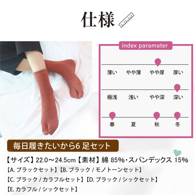 [6足セット] 足袋ソックス レディース 女性 靴下 足袋型 シューズ 深履き クルー丈 春 夏 秋 冬 オールシーズン 無地 シンプル おしゃれ おすすめ 大人 かわいい コーデ ムレない 冷え性 外反母趾 対策 保温 保湿 防臭 抗菌 効果 通勤 通学 学生 フリーサイズ リノウル